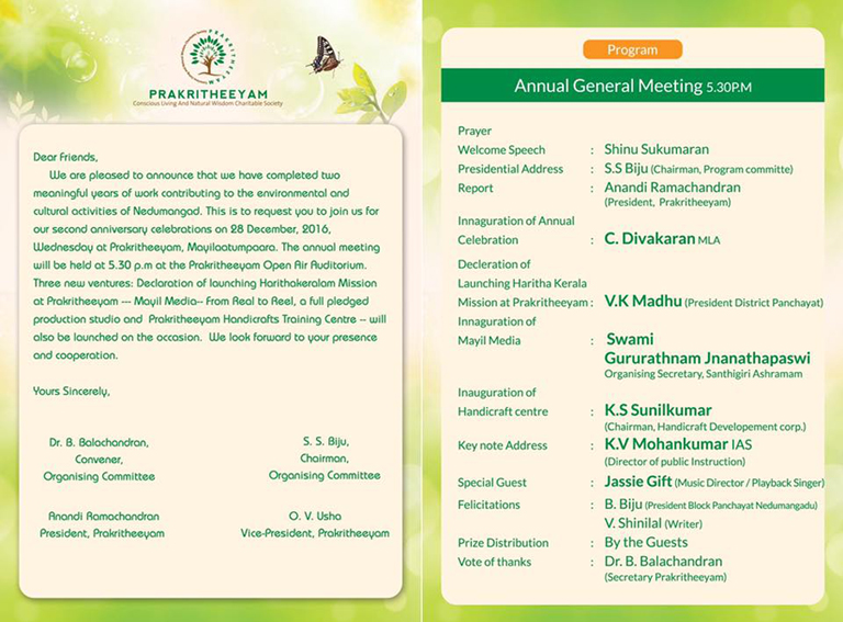 Prakritheeyam First Anniversary - 27-28 December 2015