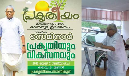A seminar on environment ‘Prakrithiyum Manushyanum’ (Nature and Man) held on 2 may 2015 was inaugurated by opposition leader Sri. V.S. Achuthanandan. Both the veteran political leader and Sri. Mullakkara Rathnakaran (former minister for agriculture) who was the chief guest, spoke on the various environmental problems the state is facing today. Dr. Bijukumar (eminent aquatic scientist) who delivered the keynote address described Kerala pertinently as the riverbeds of its 44 rivers. Widespread quarrying of our mountain ranges is destroying several fountain heads and tributaries that contribute to these rivers. This weakening of rivers in turn leads to destruction of coastal areas. Palode Ravi MLA who presided and V.V. Rajesh, spokesperson, BJP also expressed their concern about the over exploitation of nature. They extended their support to protect Mayilatumpara and its surroundingsCultural Programmes